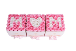 MOM set of 3 Large square M White And Pink Preserved Roses